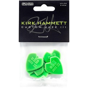 Originally only available as part of the Kirk Hammett Pick Tin, players can now get Kirk Hammett’s personal pick in a 6-piece Player’s Pack.Once the axe-wielding Metallica madman first got his hands on a Jazz III pick, he never looked back—its superior speed, precision and control changed his whole playing experience. Eventually, he took to customizing it himself for even better handling by cutting a V-shape out of the grip.Based on that modification, Dunlop created the Kirk Hammett Signature Jazz III Pick so can keep a regular supply of the same pick Hammett uses on the road and in the studio.