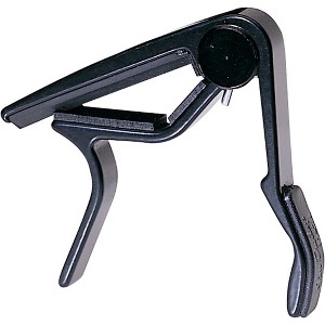 Take your guitar playing to the next level with the Dunlop Trigger Flat Guitar Capo. This guitar capo is made of aircraft-quality aluminum with a padded, spring-action grip that can be changed quickly with just a squeeze. This capo takes a minute to put on and helps produce loud and clear musical notes without going out of tune. With a unique pressure pad to fit fingerboard and frets, this works equally well for 6- and 12-string guitars without causing damage to your instrument. Whether you're an electric guitarist or an acoustic player, this versatile tool will help you achieve a great tone with little effort. So, stop fretting and start practicing your fretting techniques with this must-have guitar accessory.
