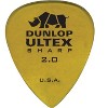 Based off of a coveted vintage tortoiseshell pick in the Dunlop collection, the Ultex Sharp guitar pick has a rigid body tapering into a thinner and sculpted tip for enhanced control and speed. The seamless contoured edge surrounds the pick for more playing surfaces and tones. Engineered of Ultex-the Dunlop Ultex Sharp is virtually indestructible and delivers a crisp tone with quick release attack. Available in .73, .90, 1.0, 1.14, 1.40, and 2.0mm gauges.