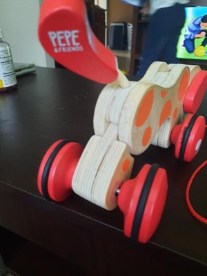 [This review was collected as part of a promotion.] This little Pepe pull-along dog is absolutely adorable! My daughter has so much fun pulling Pepe along and playing with him. It keeps her busy for a long time. She can push, roll or pull him along. She sits and plays with him on the floor every day! I love that it is made well, is keeping her entertained as well as helping her dexterity and hand-eye coordination. We absolutely love Pepe and think you will too!
