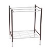 Add this Organize It All Towel Rack to your space to keep is clean and organized. This rack comes with 3 bars for hanging towels and a bottom shelf for extra storage. Put in your bathroom to keep towels off the floor and to dry them. Store extra folded towels on the shelf. The wire racks and bronze frame add stability and style to this piece.