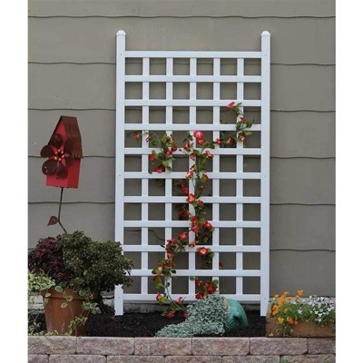 Dura-Trel Country Garden Vinyl Trellis, Outdoor Plant Support Frame, White, 35" x 66" - Decorative Grid-Style Lattice for Climbing Vines & Flowers,