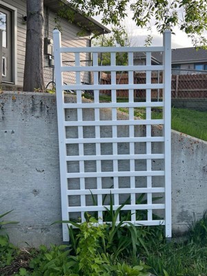 [This review was collected as part of a promotion.] I received the Dura-Trel Country 35x66 inch vinyl garden patio trellis in white from Influenster for my honest opinion. I included two pictures. One of the item constructed fully and the next of how we will use it in the weeks to come. It will provide both privacy and an area for vines and flowers to climb! My husband said it was very easy to put together and time will tell how durable it is. So far so good!!! I think it looks great!