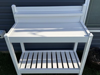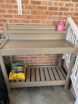 [This review was collected as part of a promotion.] This potting bench was very easy and simple to install. It is made out of a very durable and lightweight plastic material. It’s perfect to use the bottom of the bench as storage. And I love that it’s very easy to clean this bench.