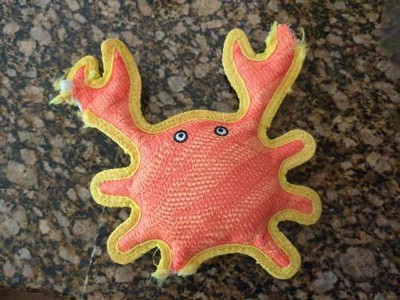 The Duraforce crab is a fun, bright colored, dog toy perfect for a game of fetch or tug with your pup! Duraforce toys are made with multiple layers of flexible materials that are cross stitched together for extra durability. Plastic coated woven mesh on the outside and polyester on the inside. The Duraforce Crab floats, too for added fun at the pool, lake or beach. The squeaker is sewn into a safety pockets on the inside, which will further delight and engage your pooch. Our toys are built to last, but keep in mind that no toy is "indestructible". They are designed for fun and interactive play - not as chew toys. Machine wash / Air dry.