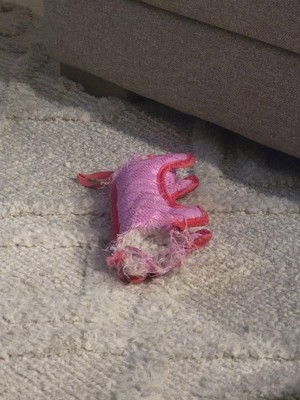 This is the most durable toy around, it's perfect for outdoors because it's bright pink. It's also machine washable which makes cleaning it a breeze.
