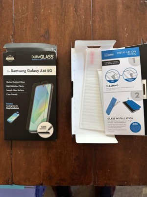 Protect your device screen with DuraGlass tempered glass screen protector with quick installation tabs for your Samsung Galaxy A16 5G device. DuraGlass provides superior protection for your device screen and is designed to fit perfectly on your device. Using a high-quality, shatter-resistant tempered glass, this screen protector provides high definition clarity and a smooth, touch-friendly surface, so you will forget it is even there. The glass has an anti-fingerprint coating to limit unwanted smudging and fingerprints. The screen protector is also case friendly allowing you to use it without compromise. The DuraGlass screen protector includes alignment installation tabs for an easy error-free installation. Some of the key features include shatter-resistant 9H glass, high definition clarity, smooth glass surface, bubble-free, case friendly, alignment tabs for installation ease and smooth beveled edges.