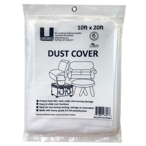 Dust Cover - 1 Pk - UBMOVE Furniture Dust Covers offre a versatile level of protection to large household and office items. These plastic dust covers are designed to shield furniture, large appliances, and high-value electronics during move and storage. Whether it’s your dining room table, flat-screen TV, or custom-built bookcases, these covers keep dust, dirt, and moisture at bay. Crafted from heavy-grade polyethylene, UBMOVE Dust Covers offer durability and resistance to punctures. They’re ideal for safeguarding against weather elements during transit or renovation projects. Each pack of Dust Covers include a single plastic furniture protector, suitable for items up to 10 ft x 20 ft. Secure the cover with tape, moving straps, or rope to keep your furniture pristine.