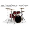 This 4-piece maple configuration consists of 10x8 and 12x9” suspended toms, 16x14” floor tom and 22x18” bass drum. Snare drum, cymbals and kit hardware are not included.