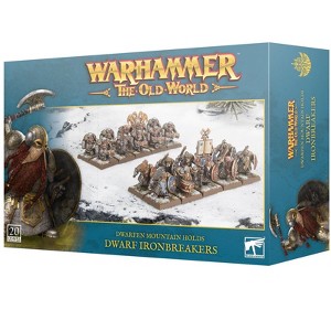 This multipart plastic kit builds 20 Dwarf Ironbreakers or 20 Dwarf Irondrakes. Alternatively, you can build 10 of each for use in your Dwarfen Mountain Holds army in games of Warhammer: The Old World.