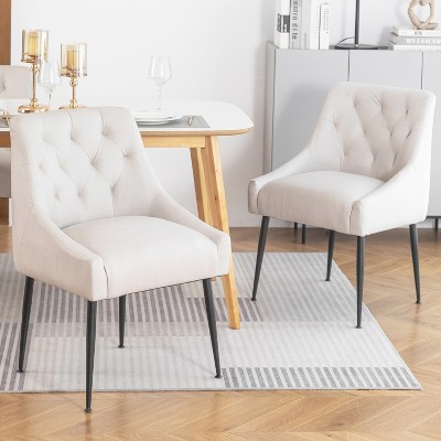 DYHOME Modern Dining Chairs Set of 6, Mid Century Kitchen Dining Chairs with 5.12” Cushions, Upholstered Dining Chairs with Back Pull Rod