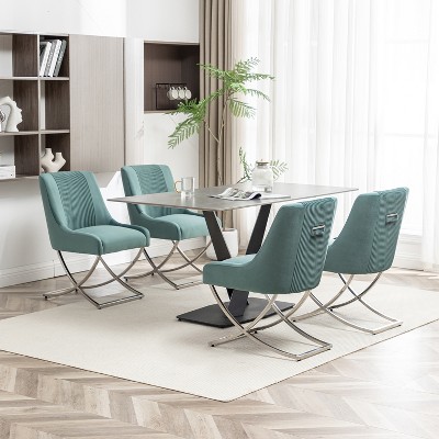 DYHOME Modern Velvet Upholstered Dining Chairs Set of 2, Mid Century Kitchen Side Chairs with Back Pull Rod for Kitchen, Living Room