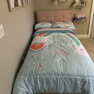 South Shore Twin Dylane Upholstered Platform Kids' Bed and Headboard Pale Soft Gray