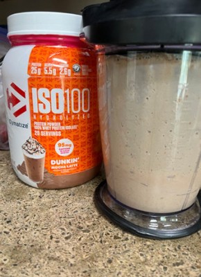 - 20 servings of Dymatize ISO100 Dunkin Mocha Latte Protein Powder
