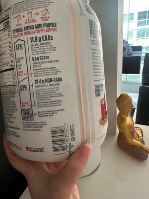 - 25 grams of protein, 5.5 grams of branched-chain amino acids (BCAAs) & 2.6 grams of Leucine per serving.