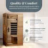 This sauna seamlessly integrates into any home style. The Pacific clear cedar wood constructions create a look that will complement existing home furnishings, while the tempered glass door allows you to see in and out without losing valuable infrared heat. The vented roof and clasp-together assembly make this unit an easy-to-use staple for all your home health needs.