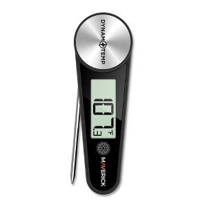The Maverick Dynamo Temp Instant Read Food Thermometer is the eco-friendly, battery-free solution for fast, accurate temperature readings. Its patented design generates power simply by unfolding the probe, delivering up to 4 minutes of use every time the probe is opened - no batteries required. The 2mm step-down probe provides quick readings with an accuracy of ±1.8°F, while the Hold function locks the temperature on the large, easy-to-read LCD display. Built for convenience, the Dynamo Temp features a folding design for safe storage, an IP54 water-resistant rating, and two strong magnets to keep it within reach on your grill or any metal surface. Combining innovation with ease-of-use, this thermometer makes cooking easier and more sustainable than ever before.