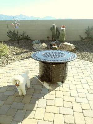 We just purchased this gas fire pit and are very pleased with the quality, appearance, and features it has especially for the price. This piece is an attractive complement to our patio furnishings.