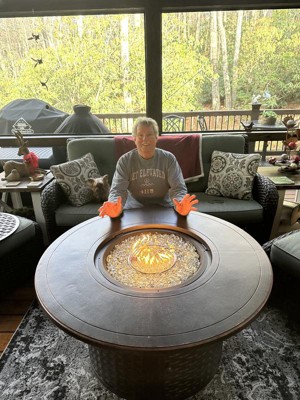 We were looking for a fire table to complete our patio. We wanted something high enough to use for occasional dining but not a regular dining table. This is perfect! It's large enough to seat at least 6 people around and has plenty of room to set a drink or plate even with the fire on. We love that it's easy to adjust the level of the flame.