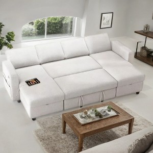 Dyonery 105-inch Four-Seat Pull-Out Sofa Bed with Storage, Side Pockets, Adjustable Backrest, Convertible