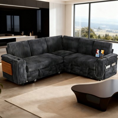 Dyonery 105" Sectional Sleeper Sofa with Pull Out Bed,U-Shaped Couch Sleeper Sofa Bed with Reclining Backrest/USB,Tool-Free Assembly,Corduroy Gray