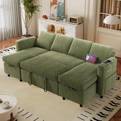 Dyonery 81" Three-Seater L-Shaped Pull-Out Sofa Bed with Storage, Adjustable Reclining Backrest, USB Ports, Side Pockets
