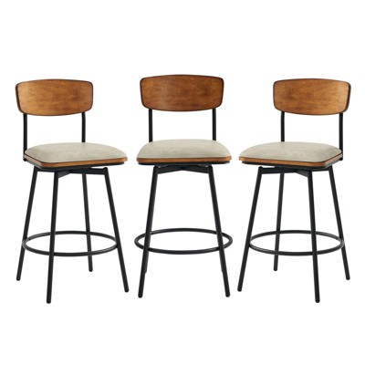 Dyonery Bar Stools Set of 3,Linen Counter Height Stools,26" Modern Barstools with Metal Legs and Footrest,Counter Chairs with Back for Kitchen Island