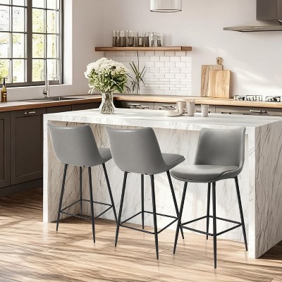 Dyonery Counter Height Bar Stools, 25.6" H Barstools Set of 2, Faux Leather Modern Kitchen Bar Counter Stools with Back and Metal Legs