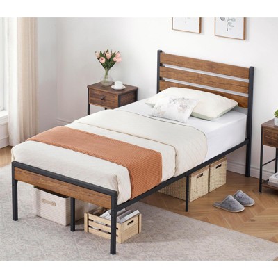 Dyonery's retro-style board bed frame is suitable for mattresses ranging from 10 inches to 14 inches in height, Queen