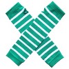 - These green & white striped arm warmers feature a thumb hole and cover hands.