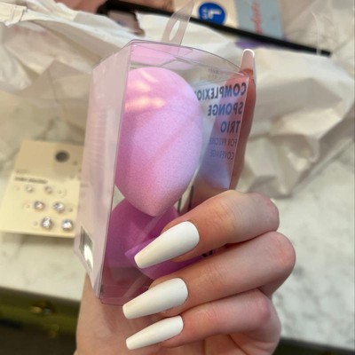 The durable, latex free material of the e.l.f. Complexion Sponge Trio allows control use for flawless application and blending. Three sizes enable precise application for all areas of the face and can be used with cream, liquid, and powder makeup. Use the small size around small areas like the eyes to blend in concealer. Use the medium size for applying color like blush or bronzer. Use the largest size to apply foundation. Reusable and washable.