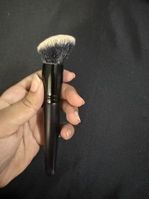 - Dense angled liquid foundation brush seamlessly applies foundation