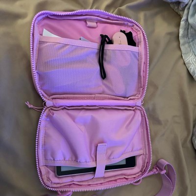 [This review was collected as part of a promotion.] I tried this bright lilac e-reader bag from heyday. The color is beautiful and bright. It has an easy to use zip closure to slip your e reader or iPad mini into. It will fit any e reader up to 7inches. There’s also a zip front compartment where you can store things as well. The e reader bag comes with an adjustable strap making it easily portable so that you can take your e reader anywhere! This will provide great protection for your e reader.