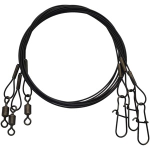 Steel wire construction. Quality lock snap at one end and barrel swivel at the other. For use in freshwater or saltwater. Length: 18".
