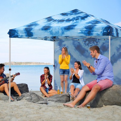 EAGLE PEAK 17x10ft Pop Up Canopy with Awnings, Heavy Duty Instant Beach Sun Shelter with Adjustable Dual Half Awnings, 4 Sandbags (Sky Blue)