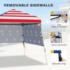 This pop-up canopy has a super lightweight aluminum frame. It's 25% lighter than steel frames of the same size, but it's just as strong and durable. Setting it up is really simple. You just pull the frame out of the backpack, unfold it, throw the fabric over it, lock the center hub, extend the legs and you are done. The walls have zippers, so they're easy to put on or take off. You can use this tent for all kinds of things, like staying cool in the sun or having a family get-together in your backyard.