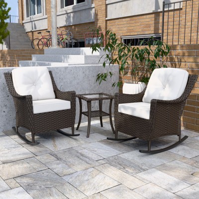 DURABLE & COZY: Made from premium PE rattan, this durable wicker set is weather- and fade-resistant, ensuring long-lasting durability. Each chair features 4-inch thick cushions made from soft, durable fabric and filled with 100% polyester for comfortable support.