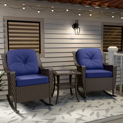 DURABLE & COZY: Made from premium PE rattan, this durable wicker set is weather- and fade-resistant, ensuring long-lasting durability. Each chair features 4-inch thick cushions made from soft, durable fabric and filled with 100% polyester for comfortable support.