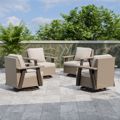 EAGLE PEAK Classic 360° Swivel Rocker Patio Chair with Thick Cushions, All-Weather Wicker Outdoor Lounge Glider, Beige
