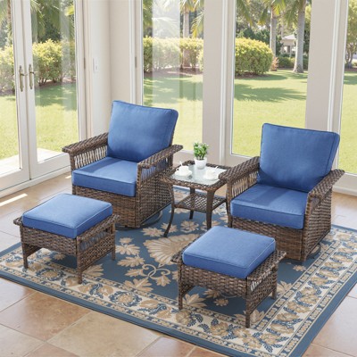 EAGLE PEAK Ocean Vista 4 piece Wicker Outdoor Patio Seating Set, Variated Wicker Conversation Swivel Chairs Set with Cushions, Beige