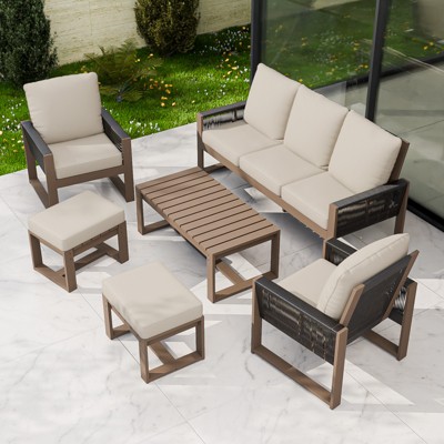 EAGLE PEAK Ocean Vista 6 piece Patio Variated Brown Wicker Sofa Set Swivel Chairs, 3-Seat Sofa