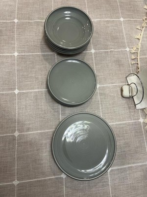 The Earth & Clay Harmony Stoneware 12-Piece Dinnerware Set balances style and practicality. Mimicking the natural beauty of hand-thrown pottery through a subtle spiralled center, you'll notice slight variations from one piece to the next. Complete with raised rims and a glossy durable finish, this collection comes available in three earthy tones, and includes 4 10" dinner plates, 4 8.5" salad plates, and 4 8.5" pasta bowls.