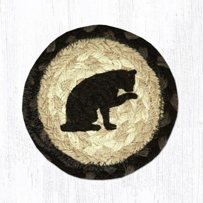Earth Rugs Black Star Round Coaster – Braided Jute, Minimalist Rustic Design, 5"x5"