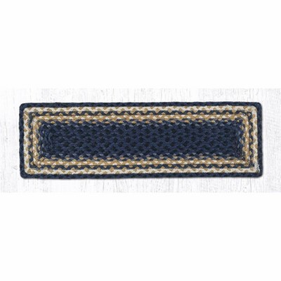 Earth Rugs Black & Tan Rectangle Stair Tread 27"x8.25" – Braided Cotton Rug