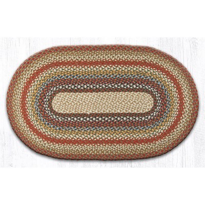 Earth Rugs Burgundy & Mustard Oval Braided Rug – Handcrafted Jute, Rustic Farmhouse Style, 27"x45"
