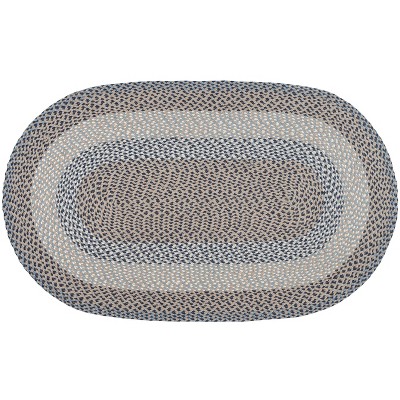 Earth Rugs Light Blue, Dark Blue & Mustard Oval Braided Rug – Handcrafted Quality Multicolor 3'x5'