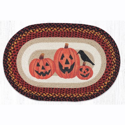 Celebrate the warmth of autumn with the Earth Rugs Oval Patch Tread featuring a festive pumpkin and leaf design. This 20"x30" oval-shaped rug is crafted from 100% natural braided jute and hand-stenciled with vibrant fall motifs, making it the perfect accent for entryways, kitchens, or seasonal displays. Its natural fiber construction offers durability and comfort underfoot, while the harvest-themed print invites cozy seasonal charm into your home. Whether placed by a doorway or beneath a decorative table, this piece blends function and farmhouse style for the perfect fall refresh.