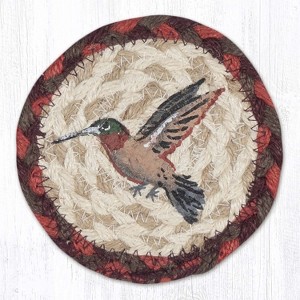 Earth Rugs Wildlife Hummingbird Printed Coaster – 5"x5" Round Jute, Hand-Stenciled Rustic Nature Table Mat