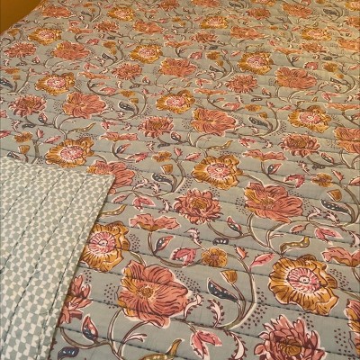 Create a gorgeous sleeping space with the help of this Boho Earthy Vines Quilt from Threshold™. This quilt showcases a vibrant floral print with a different print on the back to add excitement to your decor. The quilt is made from a 100% cotton shell material with soft polyester filling to wrap you in cozy comfort year round, and is machine washable for easy care. Pair with a matching sham to create a coordinated look.
