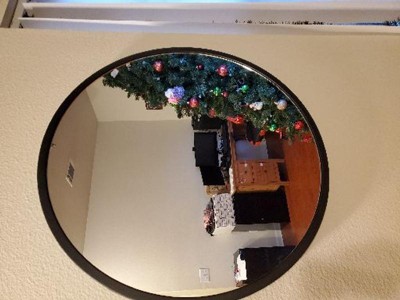 This has poor reviews which made me hesitant to but, but I love mine. It had no funny warp look nor fun house vibes. 10/10 I got the black one. It’s HEAVY. So make sure if you wanna hang up on the wall that it’s well supported!